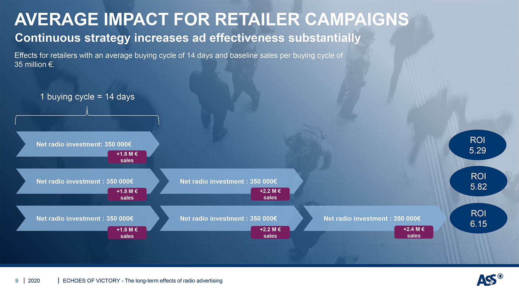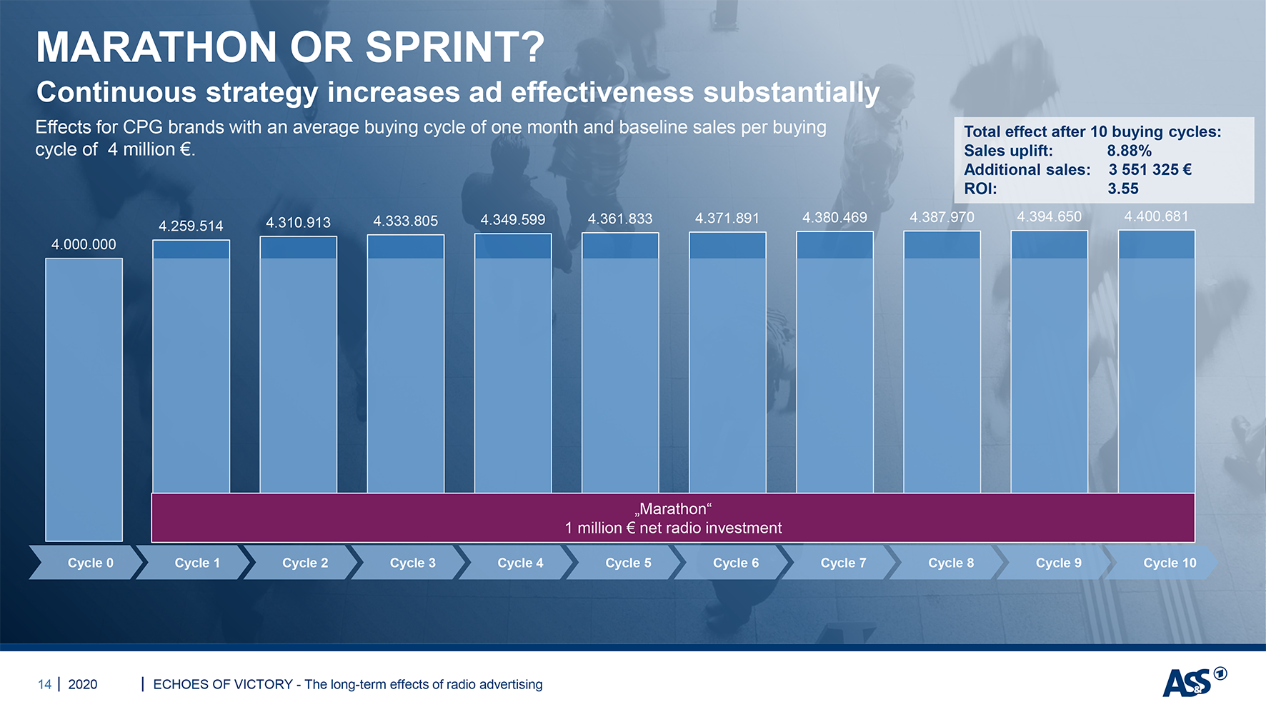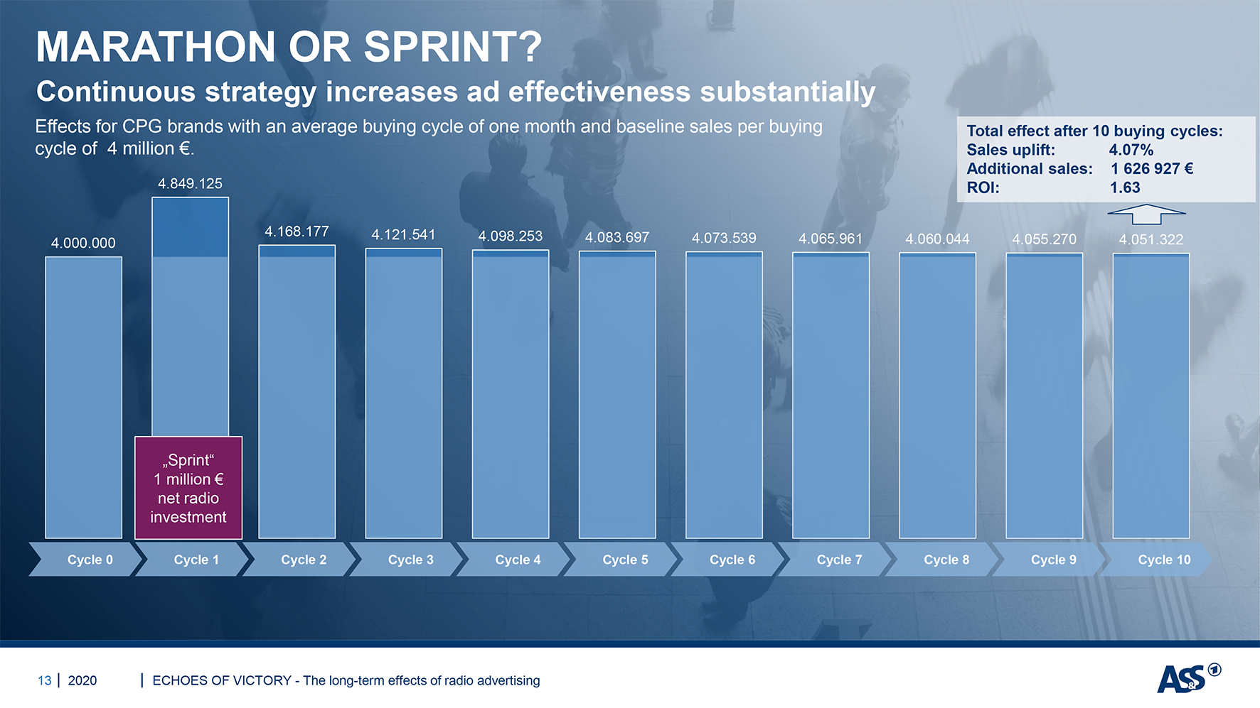 Radio ads are well-known as an effective short-term sales driver, yet the full potential and ability to influence consumer habits long-term is underestimated. Campaigns focusing on gradual, repeated and prolonged exposure may not produce the same sharp and immediate spikes in ROI as short-term campaigns but they do affect the purchase probability and add massive additional sales overtime.