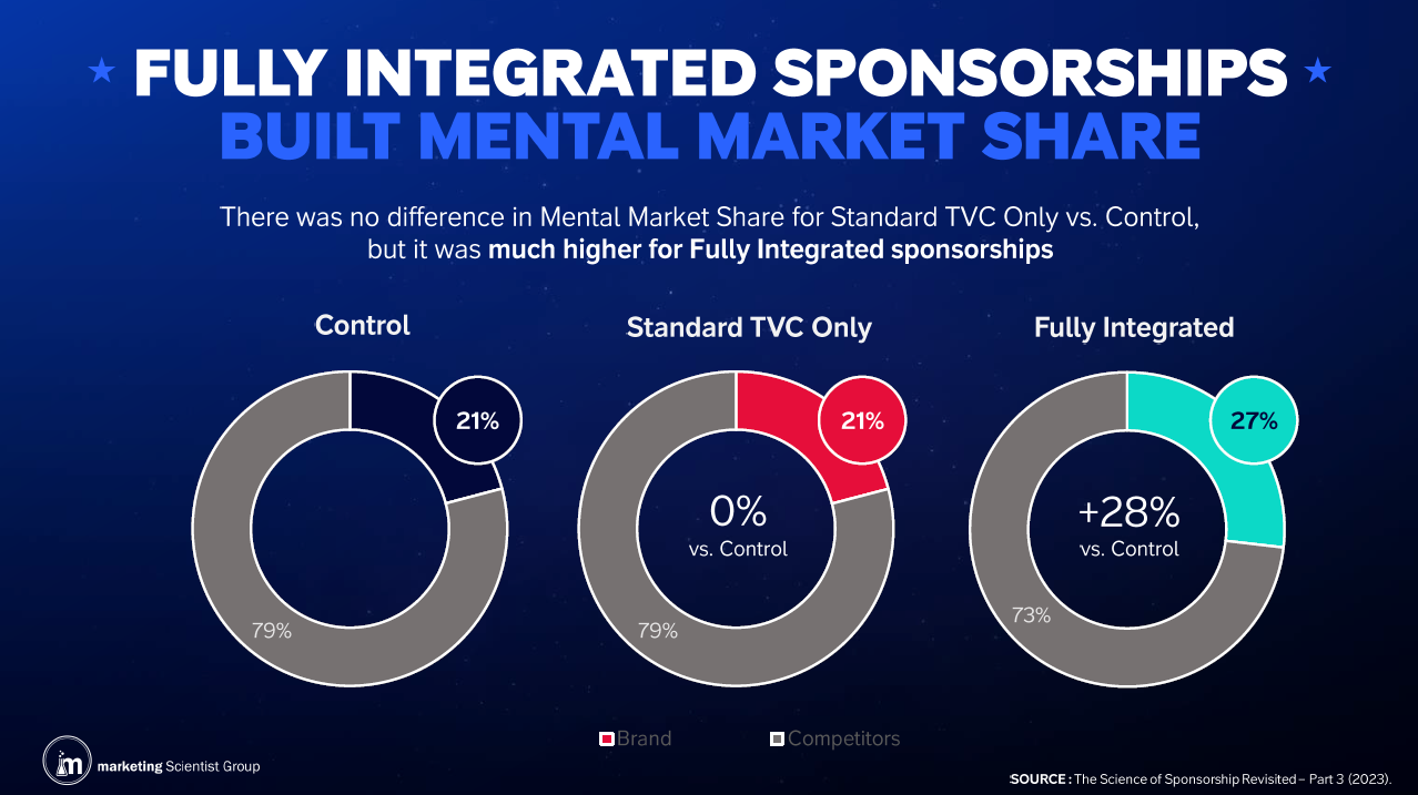 These sponsorships, when executed with depth and precision, exhibit a remarkable ability to enhance brand and advertising metrics. Integrated content within these sponsorships is a particularly potent tool for capturing and retaining viewer attention, and it even contributes to the development of mental availability—a pivotal factor in brand growth.
